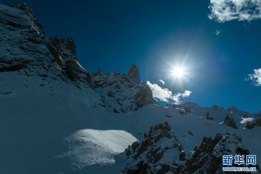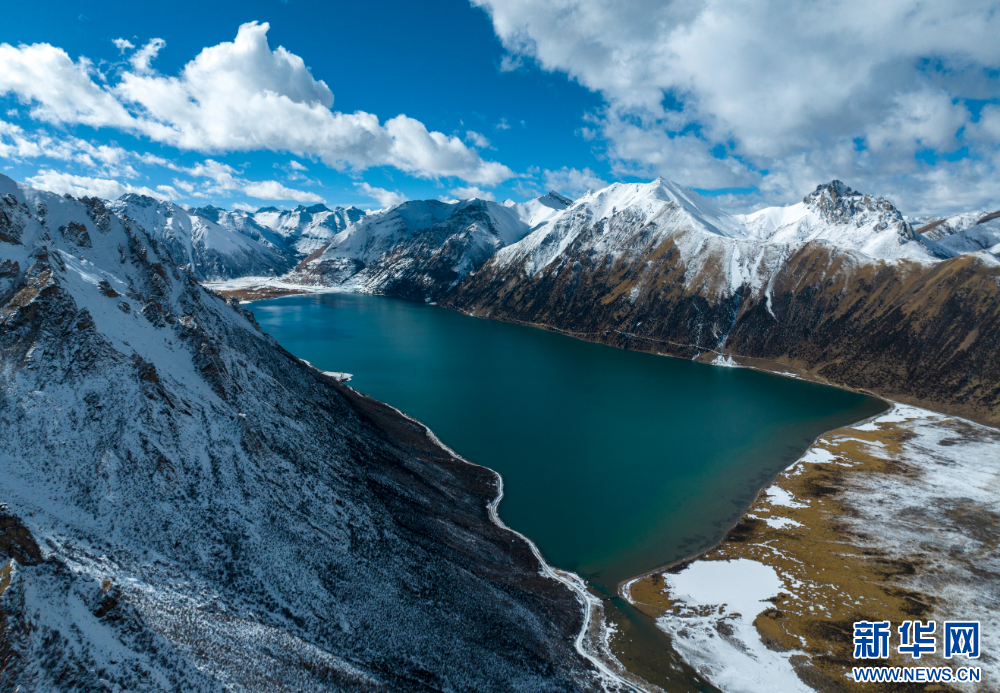 12月10日,從嘉乃玉錯湖邊拍攝的雪山(無人機照片)。新華網(wǎng) 旦增努布 攝