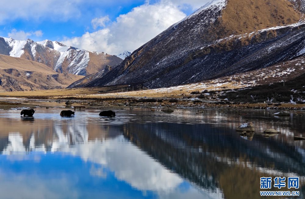 12月10日,在嘉乃玉錯湖邊拍攝的牦牛。新華網(wǎng) 旦增努布 攝