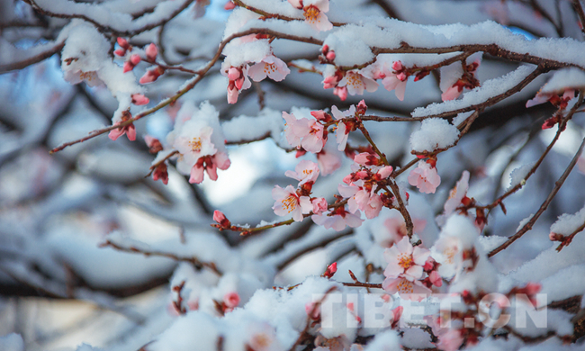 中國(guó)西藏網(wǎng)訊 近日來,當(dāng)朋友圈被西藏林芝盛開的桃花瘋狂刷屏之際。在海拔3650米的拉薩,一場(chǎng)雪在一夜間悄然把拉薩銀裝素裹。拉薩市北郊山坡上的帕崩崗數(shù)十棵遒勁的野生山桃樹已經(jīng)吐露花蕊,桃花在白雪的映襯下,愈發(fā)鮮艷動(dòng)人。(中國(guó)西藏網(wǎng) 圖、文/趙耀)