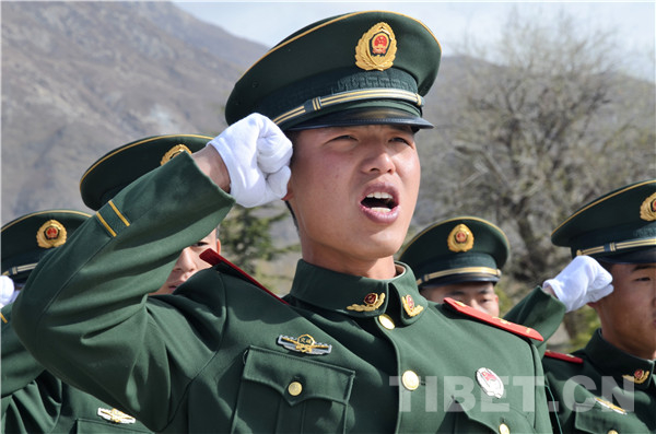圖為駐拉薩官兵重溫忠誠(chéng)衛(wèi)士誓詞。攝影:王闖