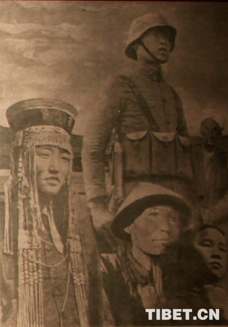圖為劉曼卿在西藏拉薩街頭散發(fā)“五族共和的中國(guó),是世界上不可辱的力量!”宣傳畫(huà)。翻拍自“康藏軺征——國(guó)民政府代表劉曼卿史跡特展”。