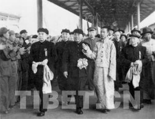 1951年4月27日,十世班禪首次進(jìn)京,周恩來(lái)總理、朱德總司令等黨和國(guó)家領(lǐng)導(dǎo)人前往車(chē)站迎接。