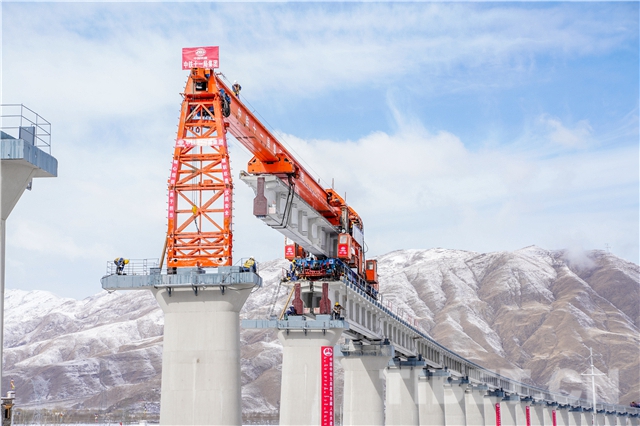 杰德秀Ⅰ號特大橋位于西藏山南市貢嘎縣杰德秀古鎮(zhèn)旁,是拉林鐵路首座聲屏障特大橋,該橋設(shè)計全長1255米,共需架設(shè)38孔T梁,其中聲屏障梁18孔。