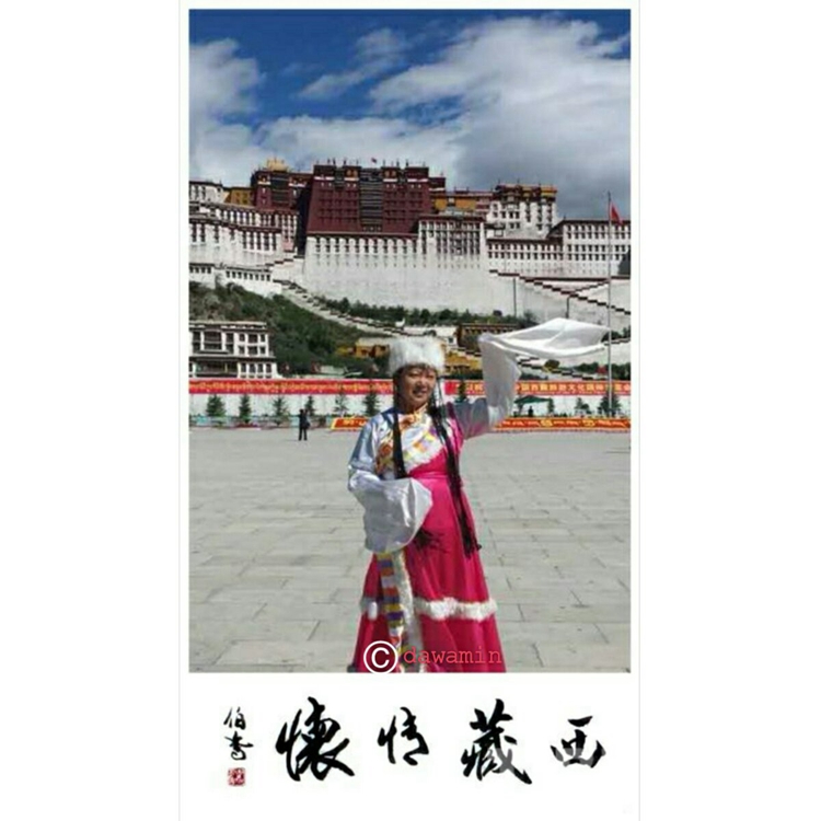 圖為2014年10月,杜琳的女兒達娃身著藏裝,在布達拉宮廣場前留影。圖片由杜琳本人提供