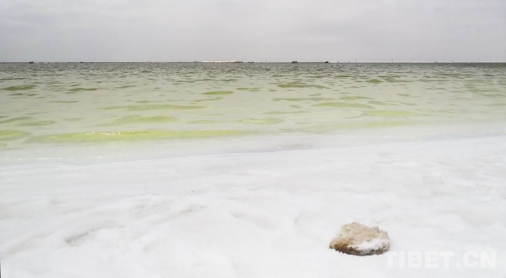 圖為察爾汗鹽湖一角凝結的鹽花 攝影:劉莉