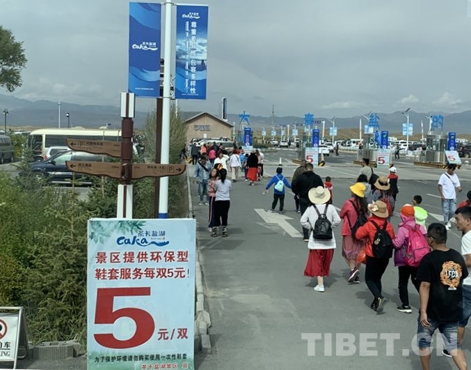 2019年8月5日,記者在茶卡鹽湖景區(qū)看到,游客們正在井然有序地排隊等候購票進入園區(qū),道路交通秩序良好,停車場車輛整齊停放,“環(huán)保型鞋套服務5元一雙”的租賃標識十分醒目,此外,咨詢服務區(qū)、票務服務區(qū)、游客集散地、產(chǎn)品展銷區(qū)等八個功能區(qū),為游客們提供了旅游餐飲、旅游互動體驗等多位一體的旅游綜合服務。