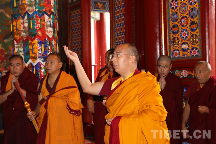 圖為十一世班禪在陜西廣仁寺舉行佛事活動(dòng)