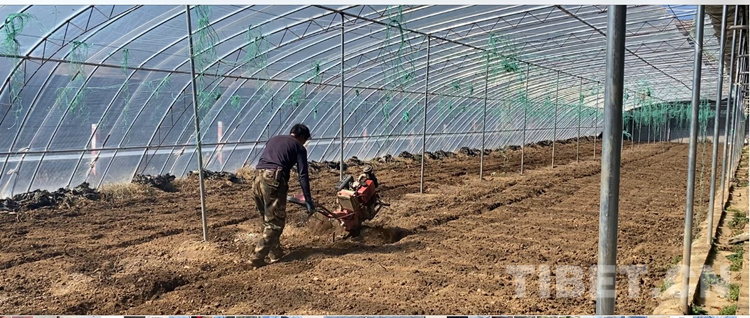 中國西藏網(wǎng)訊 “噠、噠……”2月27日,在四川省甘孜藏族自治州理塘縣濯桑現(xiàn)代農(nóng)業(yè)園區(qū)的康藏陽光種植基地,濯桑鄉(xiāng)漢戈村村民降央開著手扶拖拉機(jī)在蔬菜大棚里耕地。