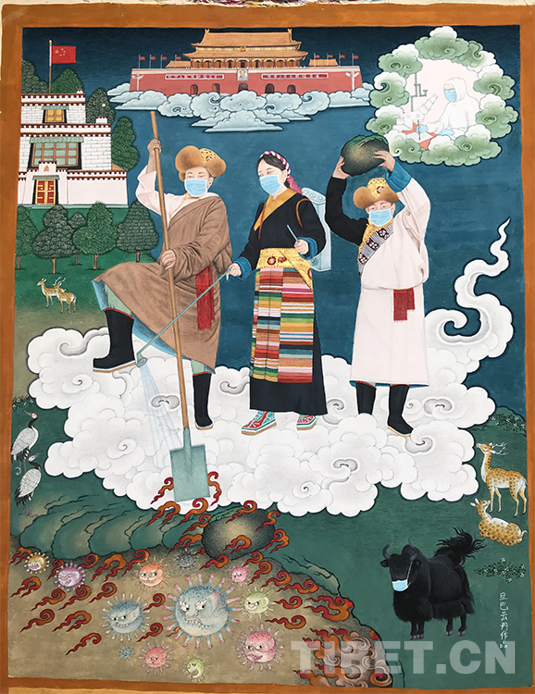 “疫情改變了很多人的工作生活節(jié)奏,看到各地的疫情防控工作,大家對戰(zhàn)勝疫情很有信心。”看到許多人奉獻個人力量,共同戰(zhàn)“疫”,旦巴云丹便想到要用手中的畫筆,樸素表達戰(zhàn)“疫”的信心和決心。