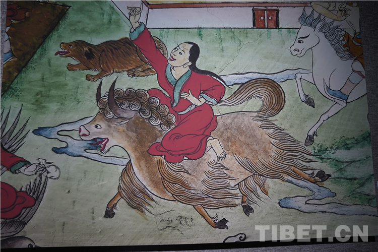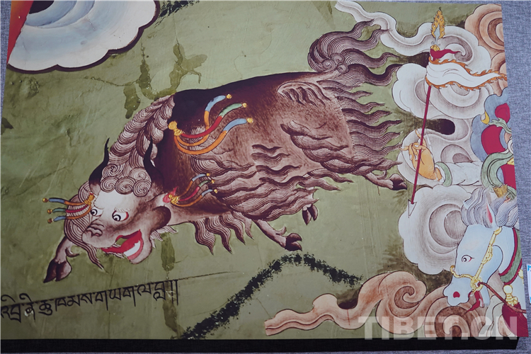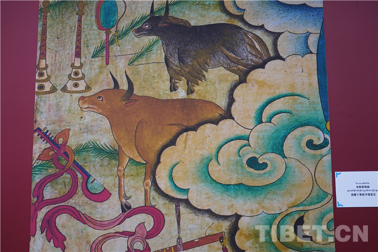 牦牛走進了藏族人民的生活,在幾千年的相處中,牦牛升華成任何一種事物和元素,完美融入了壁畫、唐卡、建筑等多種藝術(shù)創(chuàng)作中。