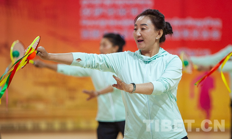 來自西藏全區(qū)各優(yōu)秀健身站點(diǎn)、社會(huì)體育組織的13支代表隊(duì)、300多名健身愛好者們,表演了鍋莊舞、健身操、排舞、瑜伽、太極拳、柔力球等優(yōu)秀全民健身項(xiàng)目。