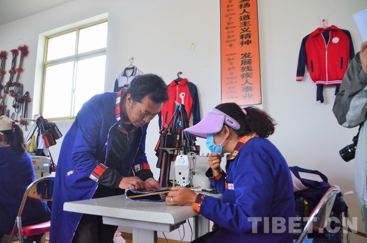 圖為殘疾人員工在制作相關(guān)產(chǎn)品