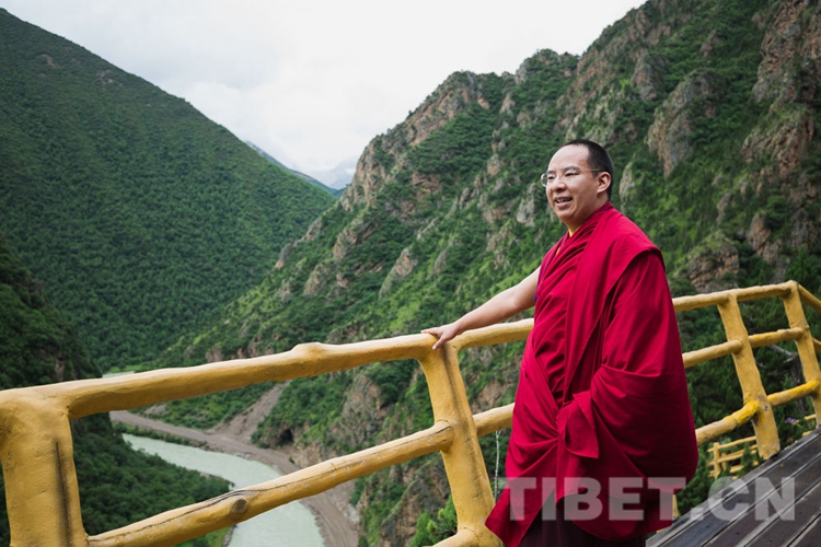 圖為十一世班禪在獨俊大峽谷觀景平臺上 攝影:鄭朔