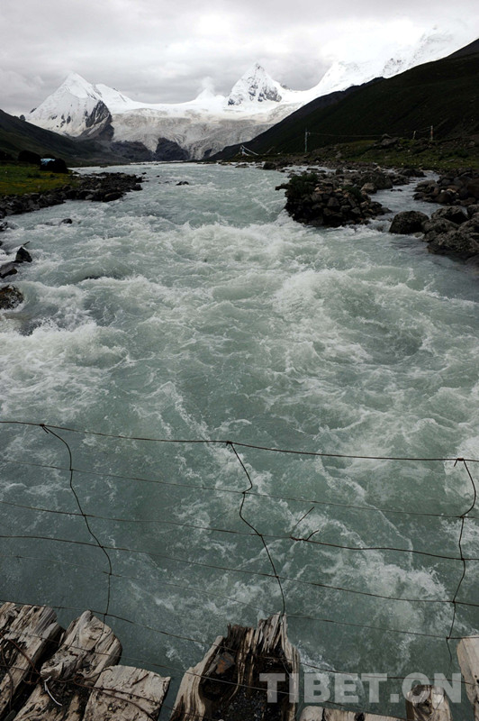 圖為冰川在山腳下不斷地融化后奔流而下,成為怒江的一個(gè)支流(唐召明2014年7月10日攝)
