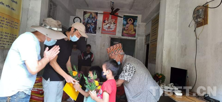 Aama Ko Maya孤兒院小朋友們向中國西藏自治區(qū)農(nóng)牧科學(xué)院援尼泊爾北部山區(qū)農(nóng)業(yè)項目組專家獻(xiàn)花以表示感謝