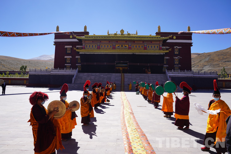 十一世班禪強調:“今年我在藏傳佛教講經闡釋交流會上,特意安排了各教派對于菩提道次第的闡釋,以一個修行者的角度,從基礎、道路、成果等方面來闡釋應該怎么修行。不管是五部大論還是六部大論,核心的內容是菩提道次第?!?/p>