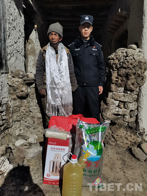 中國西藏網訊 “人生最美夕陽紅,世間最美老年花?!弊鹄稀⒕蠢?、愛老、助老是中華民族引以為傲的傳統(tǒng)美德。在元旦和2021年中國人民警察節(jié)來臨之際,西藏自治區(qū)拉孜縣公安局查務公安一級檢查站民警達瓦次仁抽出休息時間,自掏腰包看望慰問彭措林鄉(xiāng)那嘎村、芒普鄉(xiāng)普村、熱薩鄉(xiāng)卡西村、曲瑪鄉(xiāng)曲瑪村等4名孤寡老人。