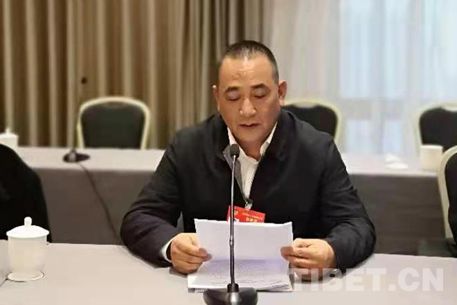 圖為全國(guó)政協(xié)委員、西藏自治區(qū)阿里地區(qū)政協(xié)副主席洛桑山丹做會(huì)議發(fā)言。圖片由受訪(fǎng)者提供