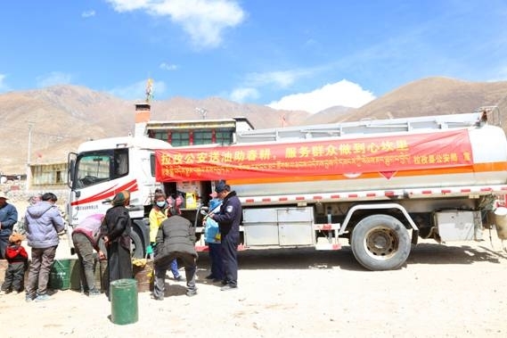 因拉孜縣彭措林鄉(xiāng)、扎西崗鄉(xiāng)地處偏遠(yuǎn),村民購買柴油困難,拉孜縣公安局及時與相關(guān)部門和中國石油拉孜分公司溝通協(xié)調(diào),適時掌握群眾用油需求,成立了拉孜公安送油小分隊,指派專職民警跟著油車送油助春耕,將便民、惠農(nóng)服務(wù)延伸到田間地頭,讓群眾不出村就可以加到放心的柴油。