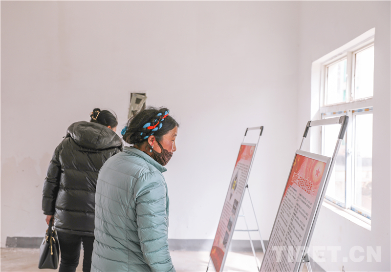 圖為祭掃群眾觀看西藏昌都市芒康縣烈士陵園內(nèi)設(shè)置的展板 攝影:蔡生萬(wàn)