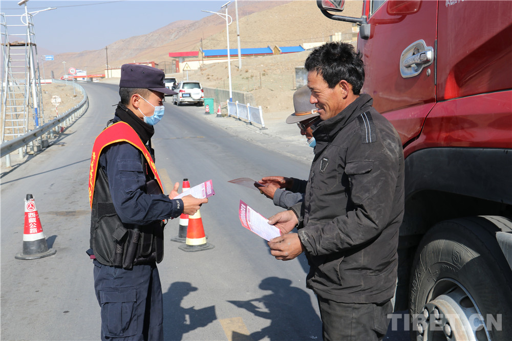 圖為老馬泉河邊境檢查站民警向過往司機發(fā)放宣傳單。李坤攝