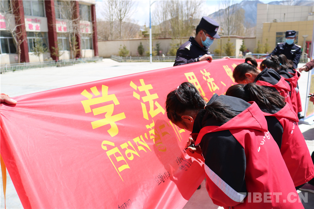 圖為南尼邊境派出所民警組織南尼中心小學學生進行簽名。旦增白瑪 攝