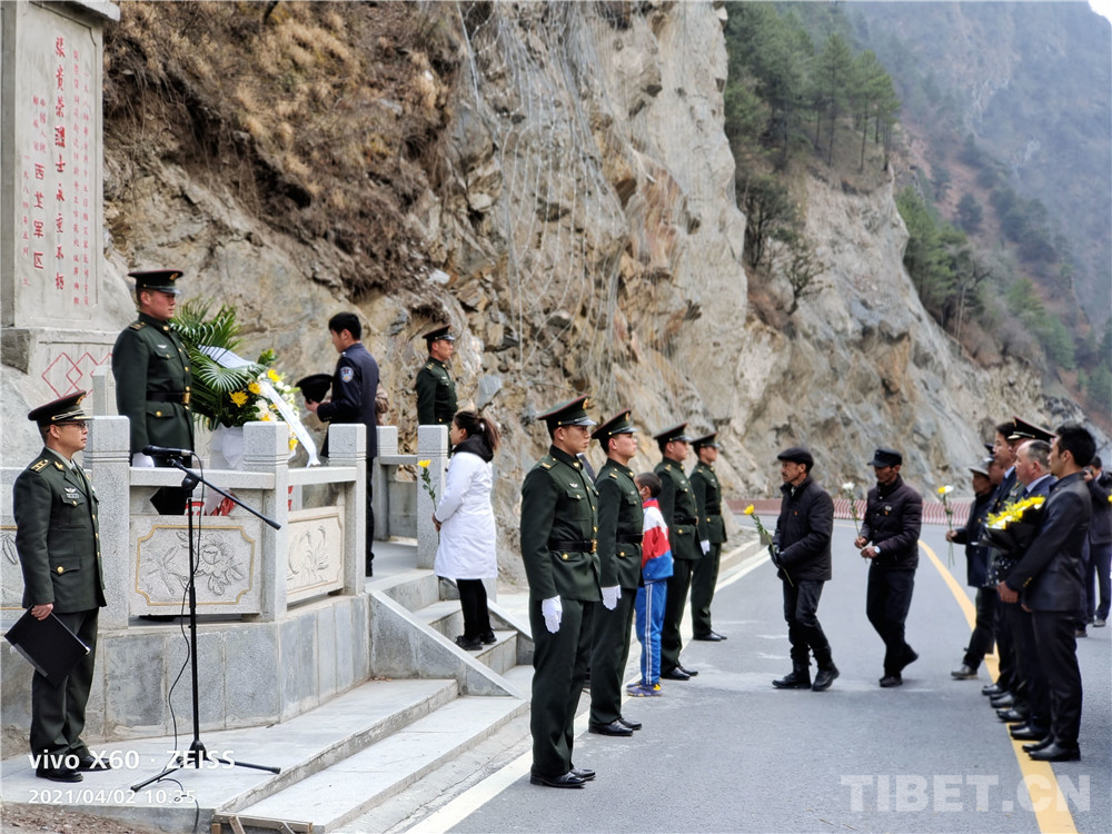 圖為隆子縣組織黨員干部在張貴榮將軍墓前獻(xiàn)單束哀菊以表哀思。隆子縣供圖