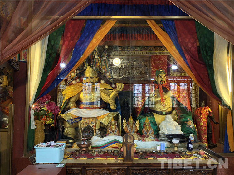 其實(shí)根據(jù)這座廟的緣起,應(yīng)該稱它為“關(guān)帝廟”,后來隨著時(shí)間流逝,當(dāng)時(shí)在藏族民間沒有關(guān)帝的概念,就把里面供奉的關(guān)帝和格薩爾聯(lián)系了起來。因?yàn)閮晌蝗宋镌谛蜗蠛蛡髡f故事中確實(shí)有很多共同之處。關(guān)羽號稱美髯公,拿著冷艷鋸,身著盔甲,一副高級武將的形象,而格薩爾傳統(tǒng)上也是美髯,身著盔甲,拿著長矛、盾牌、寶劍等武器。兩位在代表的人格和精神上都具有威武、嚴(yán)明、正義等意義,關(guān)羽是忠義千秋的武圣人,象征著忠義仁勇誠信的美德。而格薩爾王在藏族神話中,懲奸除惡、輔助弱小、英勇無畏,也象征了種種美德。所以藏族民間將兩位由人封神的“武圣”“武神”搞混,也在情理之中。這也從某種角度體現(xiàn)了從各個(gè)民族文化發(fā)源的民間文化,是在各民族交往交流交融中實(shí)現(xiàn)的,并在文化交融中形成中華民族共同體意識。其實(shí)拋卻民族特色,各民族的人民都是喜歡善良、討厭丑惡,喜歡忠義、厭惡奸邪,喜歡英勇、厭惡膽小,喜歡誠信、厭惡欺詐的,人性的趨善、趨美、趨真,是所有民族共同的特點(diǎn)和追求。