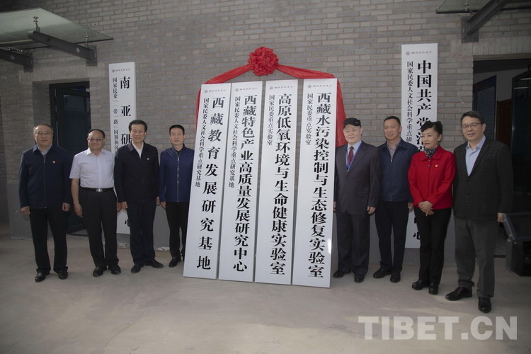 研討會開幕式之前,與會領(lǐng)導(dǎo)為西藏教育發(fā)展研究基地、西藏特色產(chǎn)業(yè)高質(zhì)量發(fā)展研究中心、高原低氧環(huán)境與生命健康實驗室、西藏水污染控制與生態(tài)修復(fù)實驗室同時掛牌揭幕。大會主旨發(fā)言之后,西藏民族大學黨委常委、副校長史本林、西藏駐格爾木辦事處(藏青工業(yè)園區(qū))黨委書記邱川共同簽訂雙方合作框架協(xié)議,旨在加強科研交流合作,共同為西藏社會高質(zhì)量發(fā)展做出貢獻。