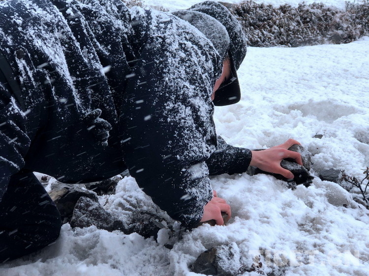 西藏日喀則邊境管理支隊(duì)貢當(dāng)邊境派出所拉青拉的執(zhí)勤民警開始一天的巡邏工作。巡邏點(diǎn)位要穿越較厚的積雪區(qū),攀爬被冰雪覆蓋的陡坡,一路危險(xiǎn)重重,為了不增加負(fù)擔(dān),除了必要的警用裝備,大家都是最大限度的輕裝簡行,連干糧和水都是定量攜帶、定時(shí)食用。巡邏車碾冰軋雪,在茫茫雪海留下一道清晰的車轍,一路荒無人煙,積雪越來越厚。在距離界樁不到兩百米的地方,巡邏車被數(shù)十厘米厚的積雪攔住去路,大家只好下車徒步前進(jìn),由于風(fēng)大路險(xiǎn),民警們只能彎著腰手腳并用匍匐著前行,隊(duì)伍里只能聽到沉重的喘息聲和腳踏積雪咯吱聲。一百多米的路走了二十分鐘,最終到達(dá)界樁,大家來不及休整,立刻展開觀察、警戒、檢跡記錄。積雪覆蓋的界樁旁,巡邏民警整齊列隊(duì),面向國旗,緊握右拳,朝著國旗莊嚴(yán)敬禮:“邊境有我,請祖國放心!”