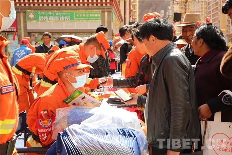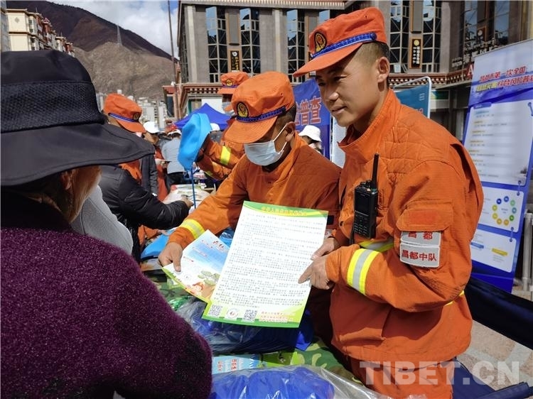 中隊指戰(zhàn)員同卡若區(qū)應(yīng)急管理局工作人員一起走上街頭,在昌都市茶馬廣場、昌慶街等人員密集的鬧市區(qū),向過往群眾認真講解防災(zāi)減災(zāi)知識,發(fā)放印有地震自救互救、防火安全常識、抗洪搶險等標(biāo)語的畫冊,及防火宣傳小帽、防火宣傳圓珠筆、購物袋等宣傳物品。