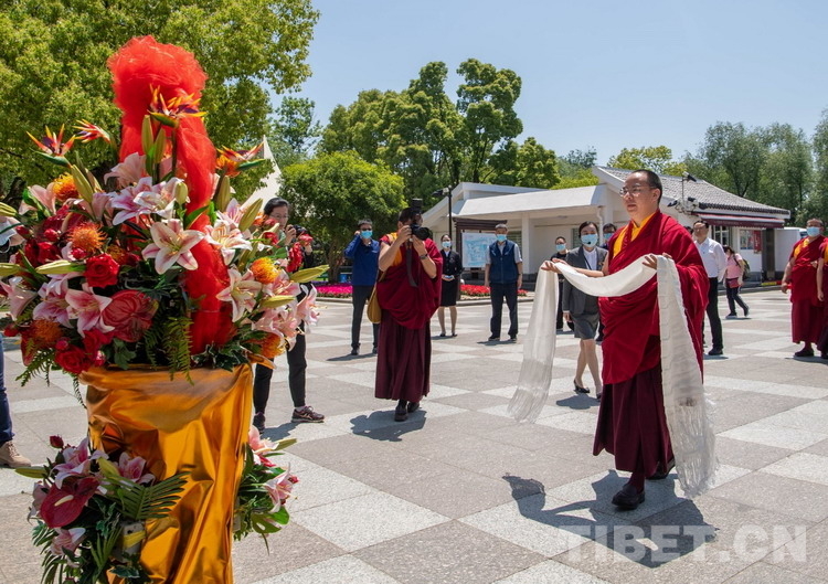 10日上午,班禪專程來到位于上海市青浦區(qū)練塘鎮(zhèn)的陳云紀(jì)念館,認(rèn)真聽取了陳云同志有關(guān)事跡,并向陳云銅像敬獻(xiàn)哈達(dá),追思陳云同志愛國(guó)憂民、為共產(chǎn)主義事業(yè)鞠躬盡瘁的偉大一生……