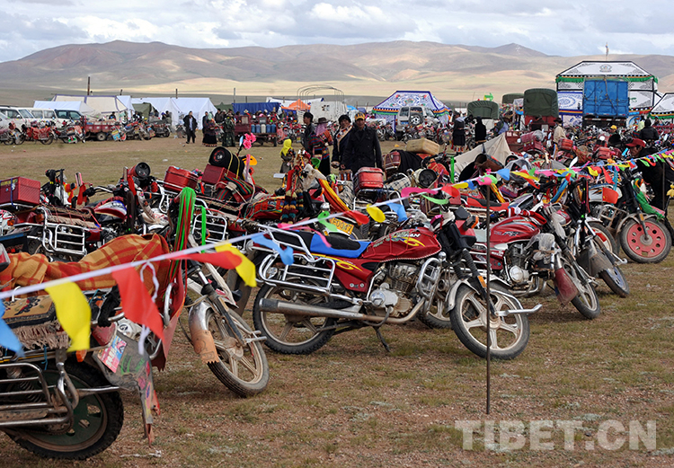 這是在雙湖“撤區(qū)建縣”慶?;顒由?,許多牧民騎著自家摩托車遠(yuǎn)道而來(唐召明2013年7月26日攝)