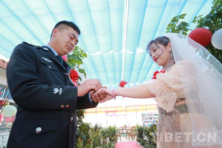 “今天能在警營里完成婚禮,非常的激動(dòng)。結(jié)婚是女人一生中最幸福的時(shí)刻,非常感謝單位的領(lǐng)導(dǎo)能給我們這樣的機(jī)會(huì),讓我倆一起度過人生中最幸福的時(shí)刻。這次的婚禮非常的有意義,將是我們一生中最寶貴的回憶,警營讓我成為最美麗的新娘?!毙履锿鯊溺鴾I激動(dòng)地說。(中國西藏網(wǎng) 通訊員/張拴根 記者/王佳豪)