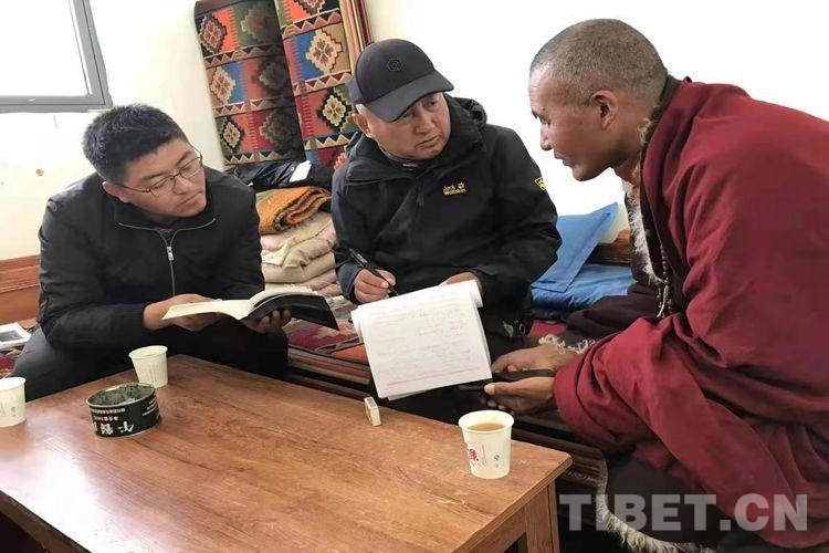 圖為西藏自治區(qū)藏語委辦(編譯局)黨組成員、副主任(副局長)加永曲加和同事調研新詞術語相關情況