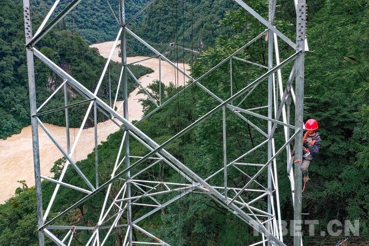 圖為西藏自治區(qū)林芝市通麥110KV輸變電工程149號電力鐵塔建設(shè)施工現(xiàn)場 攝影:趙耀