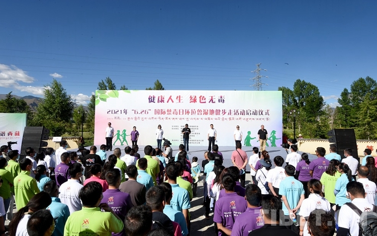 中國(guó)西藏網(wǎng)訊 6月26日,2021年“6·26”國(guó)際禁毒日環(huán)拉魯濕地健步走活動(dòng)啟動(dòng)儀式在拉薩市拉魯濕地文化廣場(chǎng)公園舉行。通過(guò)健身活動(dòng)倡導(dǎo)“健康人生、綠色無(wú)毒”理念,動(dòng)員廣大人民群眾參與禁毒斗爭(zhēng)。自治區(qū)、市兩級(jí)禁毒委成員單位代表、公安民警代表、演職人員等健步愛(ài)好者共計(jì)200余人參加了健步走活動(dòng)。