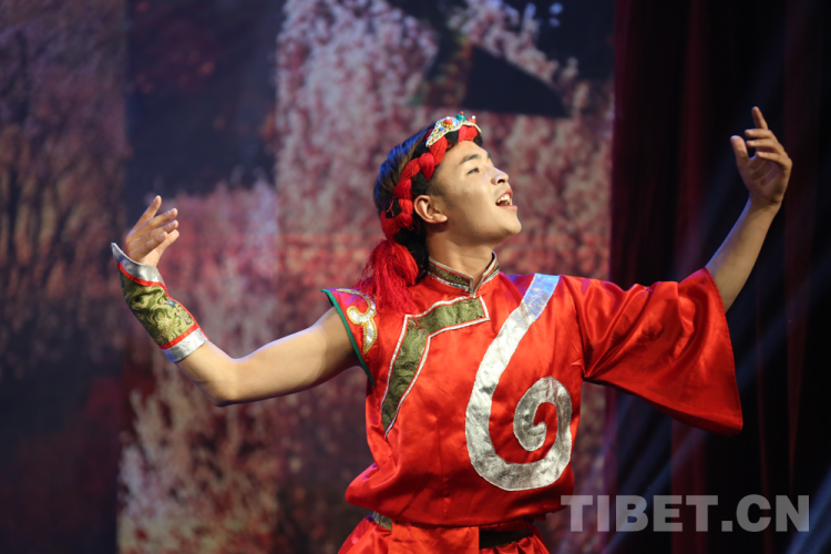 圖為正在演出組歌《共產(chǎn)來了苦變甜了》《我愛金子般的家鄉(xiāng)》《洗衣歌》《西藏人民齊歡暢》攝影:次旦拉姆