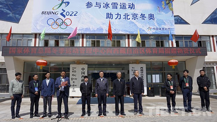 圖為國(guó)家體育總局冬季運(yùn)動(dòng)管理中心向西藏自治區(qū)體育局捐贈(zèng)物資儀式現(xiàn)場(chǎng) 攝影:王媛媛