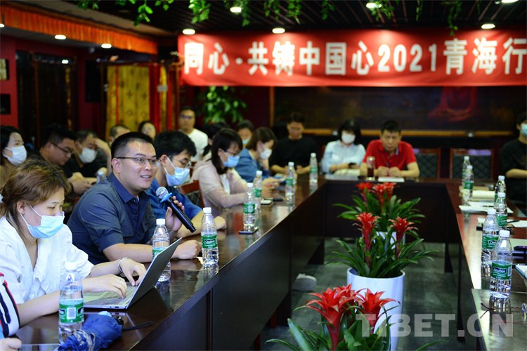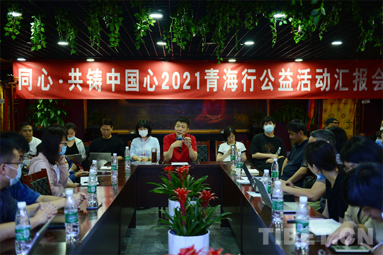 圖為“同心·共鑄中國心”組委會(huì)項(xiàng)目辦公室主任薛艷斌行前介紹果洛州具體情況