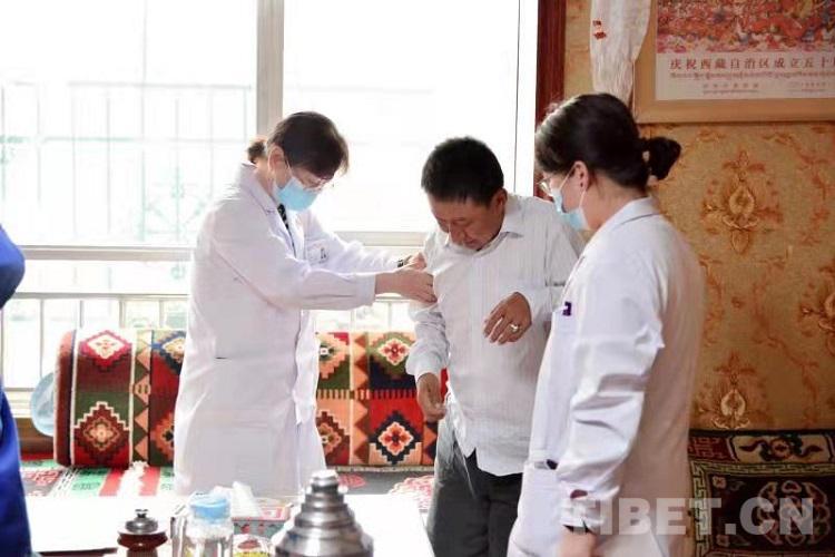 中國西藏網(wǎng)訊 為慶祝中國共產(chǎn)黨成立100周年、西藏和平解放70周年,深入學(xué)習(xí)貫徹中央第七次西藏工作座談會精神,在黨史學(xué)習(xí)教育中切實為群眾辦實事、解難題,更好地普及醫(yī)學(xué)常識和健康知識。7月13日下午,北京大學(xué)援藏醫(yī)療隊的9位醫(yī)生走進(jìn)西藏自治區(qū)拉薩市城關(guān)區(qū)恩惠苑社區(qū),開展“京藏連心”愛心義診活動。