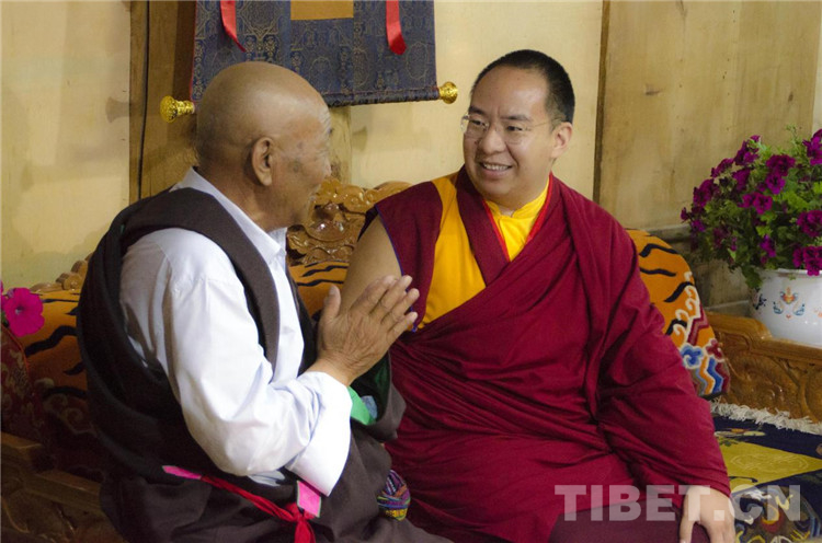 圖為班禪在溝爾普村入戶走訪時(shí),與村民親切交談 攝影:歐帆