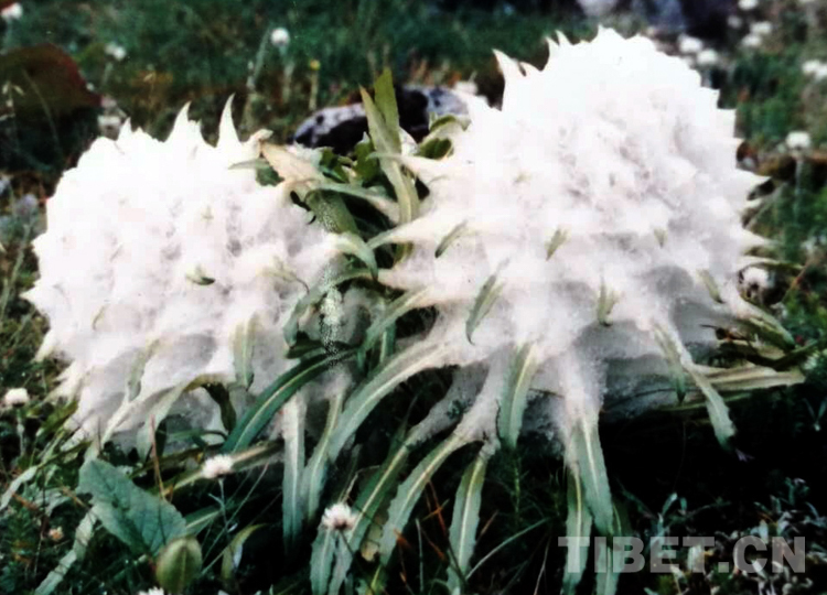 1988年盛夏,我來到雙湖辦事處(現(xiàn)雙湖縣)西亞爾雪山,飽覽了雪蓮的風(fēng)姿。它長著密密的葉子,全身披掛白色的長長的棉毛,宛若棉球。有趣的是,它棉毛交織,形成了無數(shù)的“小溫室”,創(chuàng)造了自身的小氣候。白天,高原上火辣辣的陽光對它好像特別偏愛,它從陽光吸收的熱量超過周圍的土壤和空氣。到了夜間,它又施展抵抗寒冷的特殊本領(lǐng),溫度下降的很緩慢。自我保護(hù)的本領(lǐng)使它能有效地保暖御寒,防止水分蒸發(fā),而滿身長長的棉毛又是一頂保護(hù)傘,使自己免遭高原強(qiáng)烈紫外線輻射的傷害。它頂端的條狀花瓣,又常常受到兩面長棉毛的保護(hù)……這些形態(tài)特征和特殊的適應(yīng)性使雪蓮能在高寒貧瘠的高山上生長、繁育、延續(xù)后代。