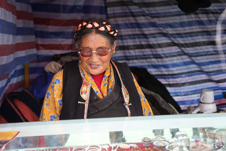 已近古稀之年的羅布和央金從1992年起,便年年參加打隆物交會(huì)。款式多、口碑好,純手工鍛造,再加上30年的堅(jiān)守。讓他們經(jīng)營民族首飾的攤位成為了打隆物交會(huì)的必去“打卡地”之一。