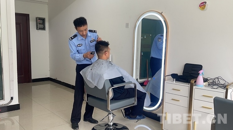 民警頓珠主動(dòng)承擔(dān)起了為戰(zhàn)友們理發(fā)的工作。理發(fā)這門(mén)手藝,是頓珠自學(xué)來(lái)的。參加工作之前,他就在老家村莊和鄉(xiāng)親們相互幫忙剪頭發(fā)。參加工作后,他就利用回家探親休假的時(shí)間學(xué)習(xí)理發(fā)技術(shù)。時(shí)間久了,他的理發(fā)技術(shù)越來(lái)越成熟,手藝也越來(lái)越好。每當(dāng)節(jié)假日、周末,大家在休息的時(shí)候,他的小理發(fā)室就會(huì)變得異?;鸨?,洗、剪、吹,整天都是忙忙碌碌的。漸漸地“托尼”老師——頓珠的名聲傳遍了樟木鎮(zhèn),在鎮(zhèn)里工作的建設(shè)工人也常常會(huì)慕名前來(lái)。