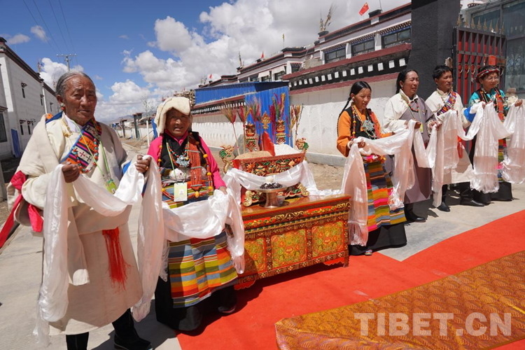 位于薩迦縣扯休鄉(xiāng)東北部的嘎吉林村,是庫(kù)區(qū)搬遷新村,2020年3月,全村139戶(hù)769人從海拔4000多米的土坯房搬遷到了這里海拔3800米的新房。得知班禪要來(lái)的喜訊,嘎吉林村村民及信教群眾身著節(jié)日盛裝、手捧潔白哈達(dá),一早就自發(fā)聚集在村廣場(chǎng)上迎候班禪。村民旦珍高興地對(duì)記者說(shuō)道:“自從搬到這兒以后,政府給我們每人分了5.5畝田地,每戶(hù)人家都享受著國(guó)家搬遷優(yōu)惠政策,住上了福利幸福房。尤其是有了村里的集體合作社,再也不用像以前那樣單打獨(dú)斗各家做各自的事了。現(xiàn)如今,無(wú)論是生活還是經(jīng)濟(jì)收入都一年比一年好?!?/p>