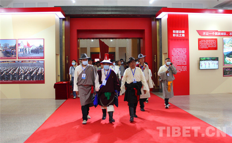 圖為西藏自治區(qū)基層干部步入“全國(guó)興邊富民成就展”展廳 攝影:王茜