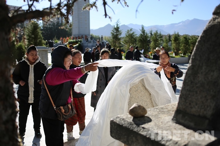 圖為群眾向烈士墓敬獻(xiàn)哈達(dá) 攝影:王佳豪
