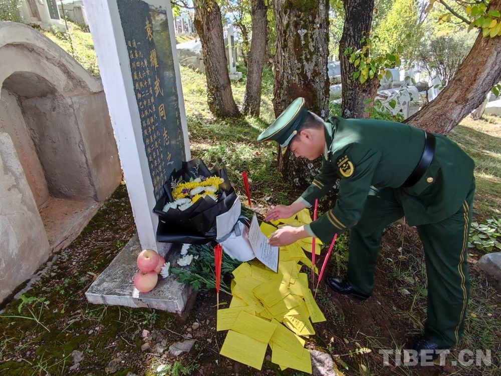 中國西藏網訊 “指導員,今天我?guī)е嘘牴俦鴣砜赐?,有個好消息要告訴您,您的兒子被國防科技大學錄取了,他選擇繼承您的遺志,成為一名軍人繼續(xù)為國家做貢獻……”9月30日,武警第二機動總隊某支隊中隊長張順中在烈士袁耀武墓碑前,莊嚴地宣讀了軍校錄取通知書。
