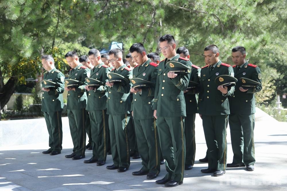 圖為武警第二機動總隊某支隊向革命烈士默哀致敬